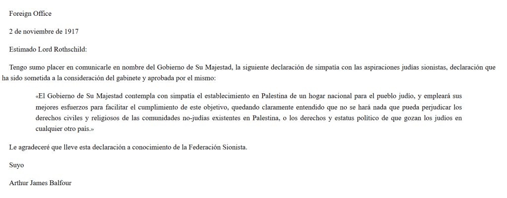 3) «Estimado Lord Rothschild»: estrategia, promesa y traición – la Declaración de Balfour