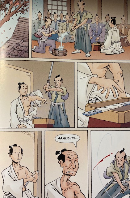 Un día, la cinta del zapato de Kotsuké se desata y le pide a Asano, de malas formas, que la ate. Este lo hace tan mal que el maestro de ceremonias se enfada y el pupilo, sin paciencia, saca la espada y le deja una marca en la frente. De aquí el subtítulo La cinta desatada, que desata también la trama. Aunque en el cómic4 no es esto lo que provoca la herida pero ya sabemos lo cambiantes que son las leyendas.